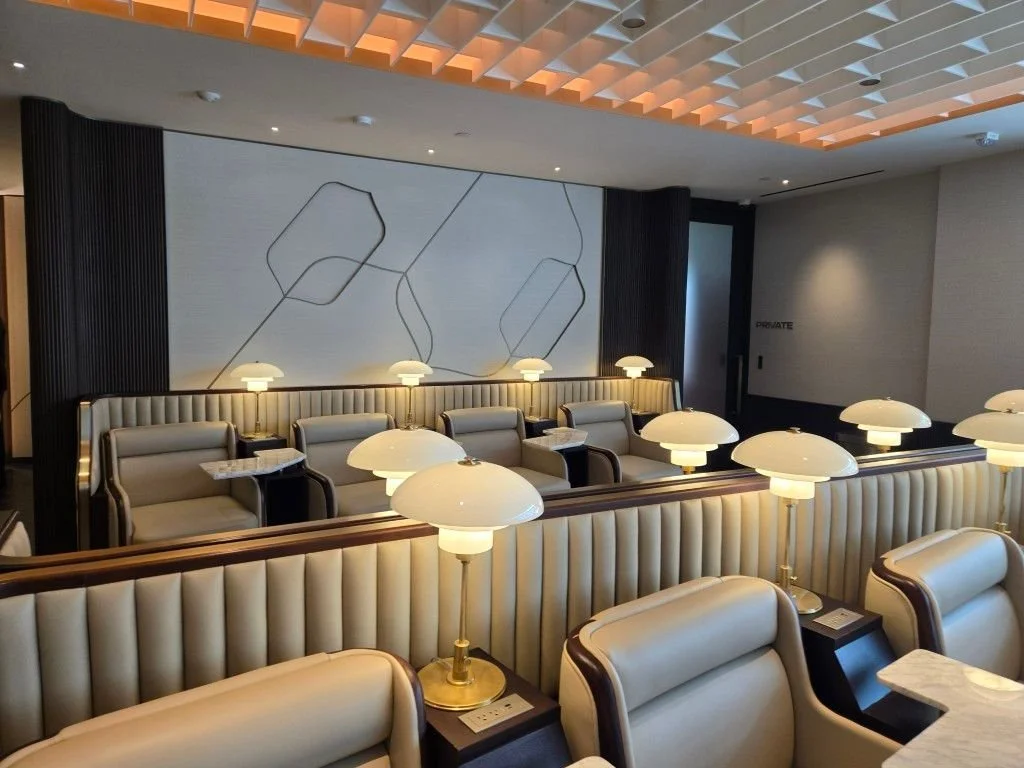 Plaza Premium Group, in partnership with Air India, renovated a 3,413 SF space in the International Terminal Building at San Francisco International Airport. The project aimed to create a high-quality, premium lounge experience for Air India passengers and other eligible travelers. The lounge was designed to accommodate 66 guests and included reception areas, a lounge/social zone, dining area, serenity pods for work or relaxation, male and female washrooms, and a pantry/back-of-house area. Scope includes upgrades to MEP systems and modifications to fire and life safety systems